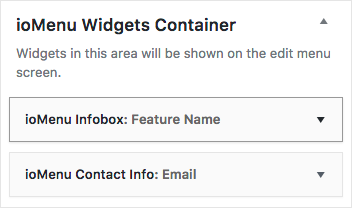 Please note that while you can add widgets to Megamenu, they won't be styled by ioMenu as its not the primary focus of ioMenu. We however have an addon which is being offered for free on our Demo Page if you signup for our newsletter.